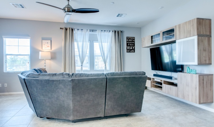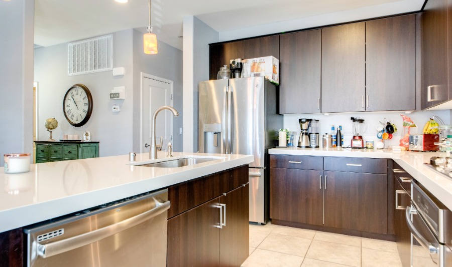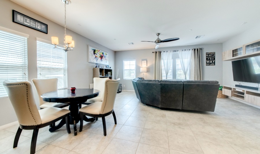 This stunning home is model perfect and beautifully upgraded. It features a roof top deck that offers view of the city, Las Vegas strip and the mountains The bright, open kitchen has granite counters, upgraded cabinetry and stainless steel appliances.